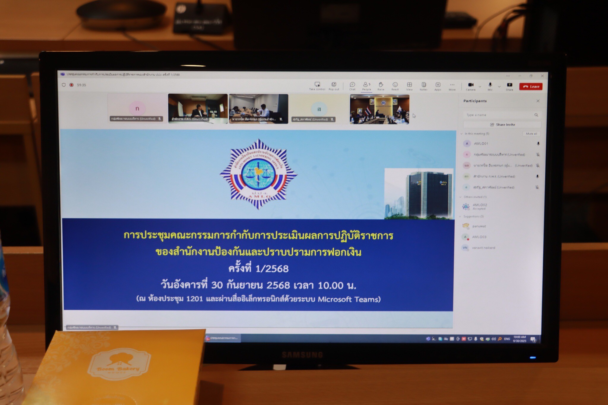 วันที่ 30 กันยายน 2568 เวลา 10.00 น. นายเทพสุ บวรโชติดารา เลขาธิการ ปปง. เป็นประธานการประชุมคณะกรรมการกำกับการประเมินผลการปฏิบัติราชการของสำนักงานป้องกันและปราบปรามการฟอกเงิน ครั้งที่ 1/2568 โดยมีคณะกรรมการฯ เข้าร่วมประชุม ณ ห้องประชุม 1201 ชั้น 12 สำนักงาน ปปง.และผ่านสื่ออิเล็กทรอนิกส์โปรแกรม Microsoft Teams